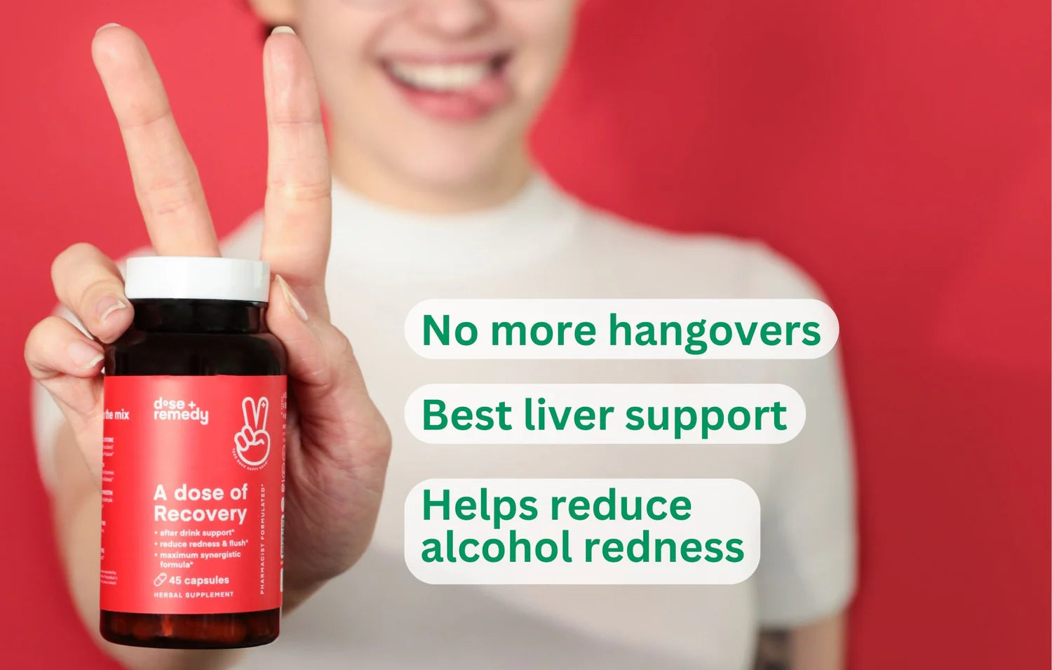 Your wine should be red. Your face shouldn’t be. A dose of recovery cleans out the toxins in your liver, and gets rid of acetaldehyde buildup. And the next day, you won’t start the morning with a hangover. Drink up.